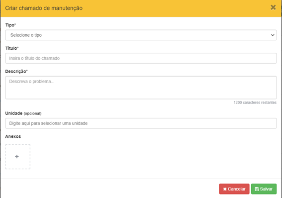 Os chamados de manutenção estarão à disposição de todos os usuários do condomínio para registrarem locais que necessitam de reparos. Observações; Aconselhamos colocar o máximo de informação sobre a manutenção, evitando assim qualquer problema futuro. As informações devem estar corretas.