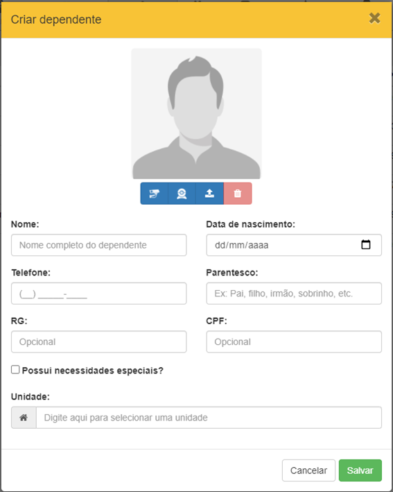 O cadastramento de um dependente é bem simples, apenas preencha os dados sendo eles: