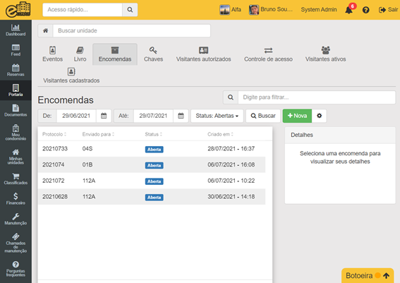 O sistema consiste com um amplo espaço de encomendas, onde é possível visualizar todas as encomendas cadastradas, coletando todas informações necessária.