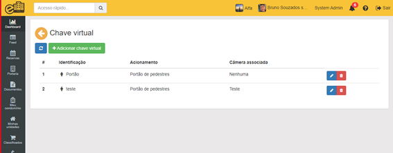 A chave virtual permite acessar os locais pré-definidos, sem a necessidade de uma chave física, basta ter configurado, pressionando a chave virtual em que está no celular e seu acesso será liberado.